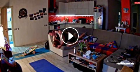 The RealLifeCam Jane and Dick Petting in the livingroom