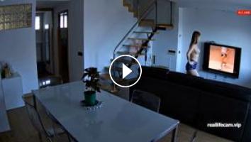 The RealLifeCam Ginger Topless Workout in the livingroom...