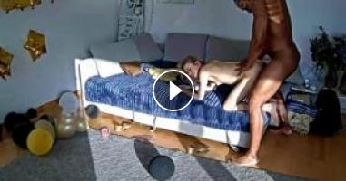 The RealLifeCam Eliska and Black guest guy hard sex on the sofa...