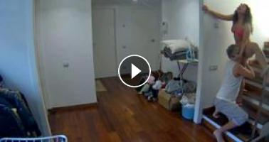 The RealLifeCam Fiora is licked in her pussy and fucked on the hallway stairs