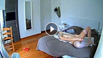 The RealLifeCam Pam dildo pussy rub in her bed...